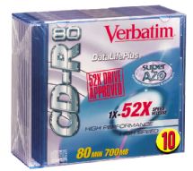 Verbatim CD-R 80 Min Slim Case 10 Pk 52x 94522